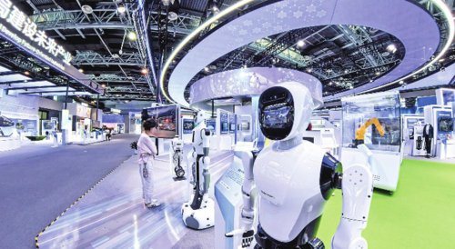 作为中关村乃至全国科技创新成就的缩影,北京中关村国家自主创新示范区展示交易中心让参观者了解中国科技发展现状与未来趋势,感受中国创新脉动的勃勃生机。图为参观者在中关村展示中心参观展出的人形机器人产品。新华社