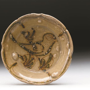 唐长沙窑青釉褐绿彩花鸟纹瓷盘