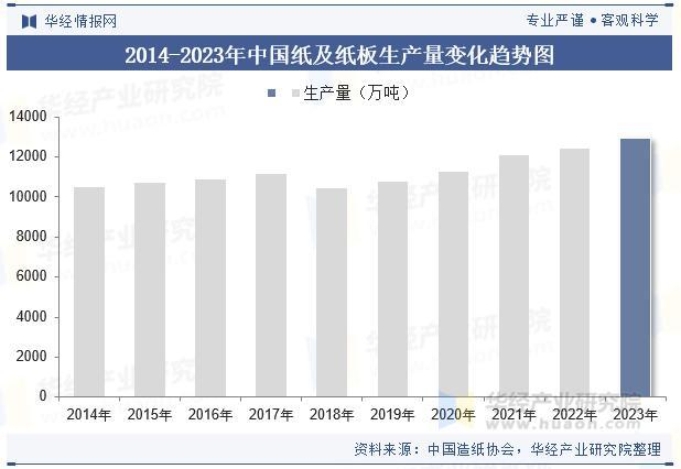 碳酸钙作为重要的造纸原料,在造纸行业中的应用越来越多。作为一个人口众多的纸品消耗大国,中国是全球最大的纸及纸板生产国。据中国造纸协会数据,2023年全国纸及纸板生产企业约2500家,全国纸及纸板生产量12965万吨,较上年增长4.35%。