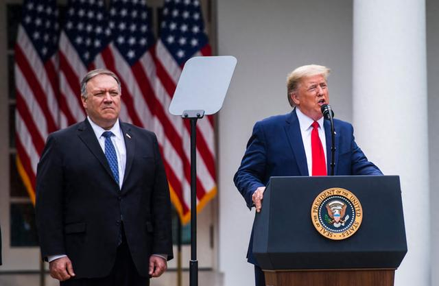 特朗普在第一任期与蓬佩奥的同框画面。 《华盛顿邮报》