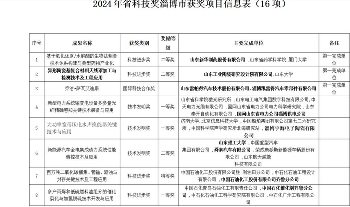 6月27日,全省科技大会召开。会上,宣读了《中共山东省委 山东省人民政府关于2024年度山东省科学技术奖励的决定》。我市提名推荐的成果,最终收获山东省科学技术奖16项。