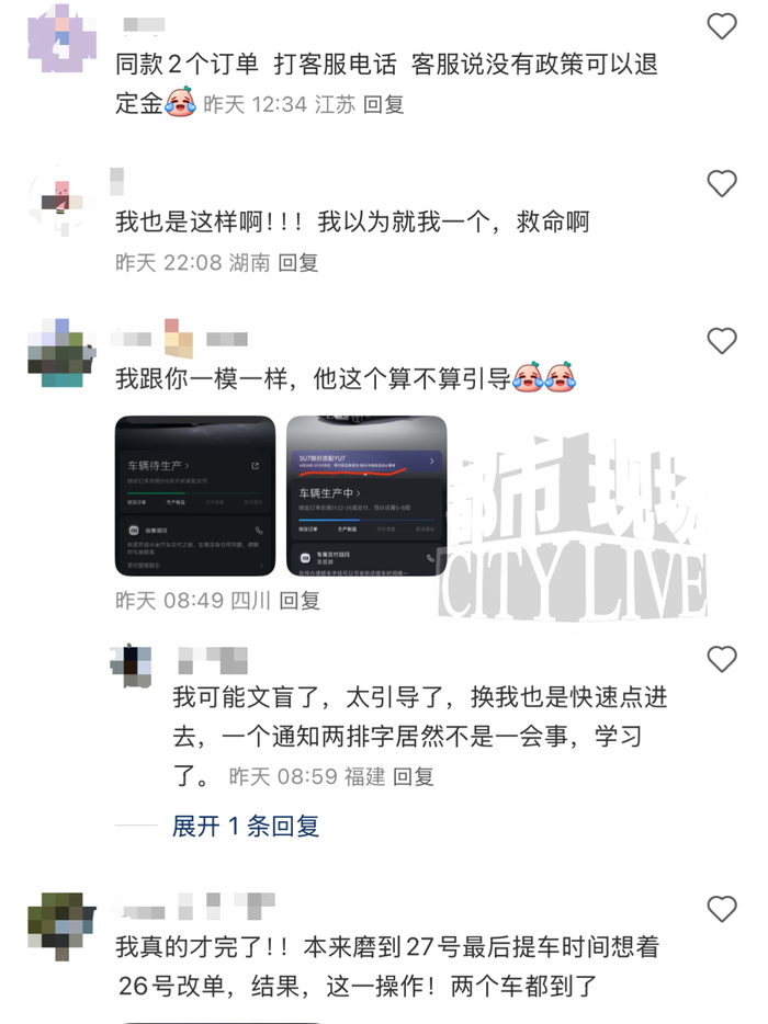 多名订购小米SU7消费者改配YU7时操作失误,又重新下订一台YU7,官方客服回应:若已锁单,取消订单定金不退!