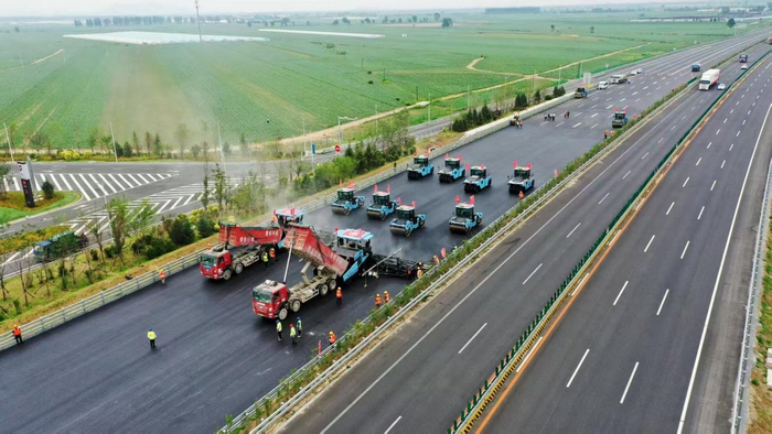 京哈高速沈山改扩建八标主线沥青路面铺设完成