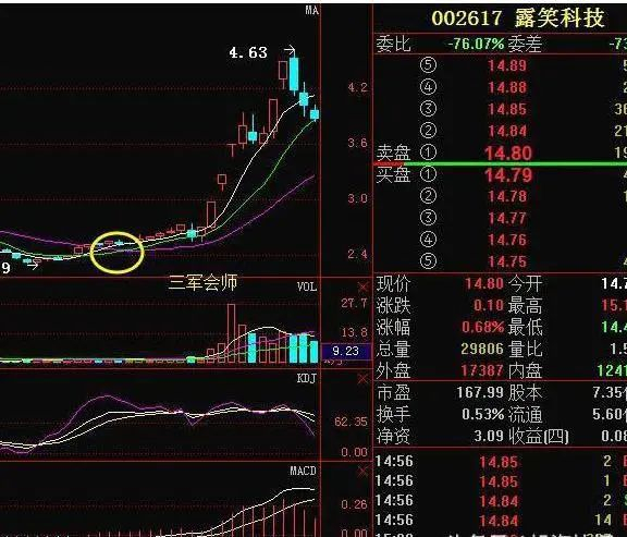 三军会师只适合在低位,如果股价正处于高位,正好也出现了三军会师,这时就必须得多加小心,这很可能就是主力的诱利,一旦着手买入极有可能会被深套。