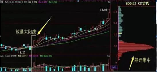 ST吉恩,日K线如图所示,2014年的上半年,吉恩镍业的股价一直处于缓慢的震荡攀升走势中,机构在中间不断吸纳筹码。3月12日,该股突然放量拉升,预示着股价即将进入一个加速上涨阶段,买点出现。
