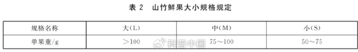 《GB/T 41625-2022 山竹质量等级》中将山竹分为 3 个等级,包括大果(L)、中果(M)、小果(S),其中大果单果重量>100 克、中果为 75~100 克、小果为 50~75 克。