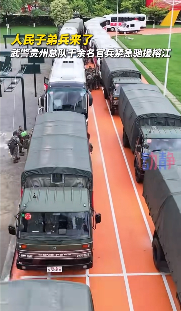 据动静贵州客户端消息,武警贵州总队增派千余名官兵携带挖掘机、推土机、装载机等大型专业机械装备,紧急驰援榕江县。