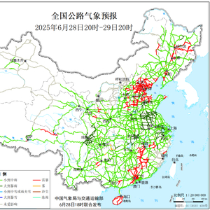 全国公路气象预报(6月28日20时至29日20时)