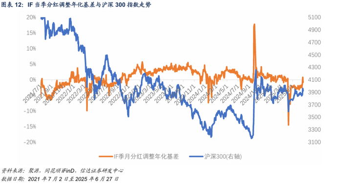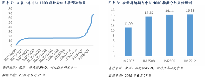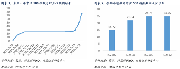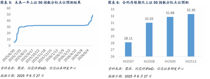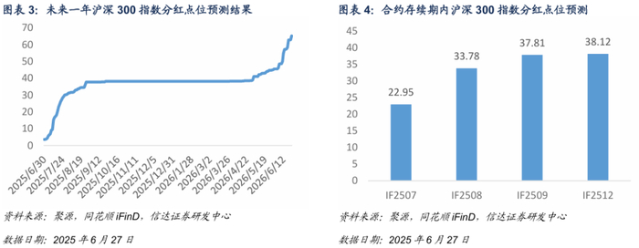 基于信达金工衍生品研究报告系列二《股指期货分红点位预测》中的方法对股指期货合约存续期内分红进行预测。
