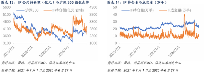 2025年6月27日,IF合约持仓额为2957.08亿元,持仓量25.41万手,成交量10.74万手。本周IF持仓与成交水平相对前一周提升。