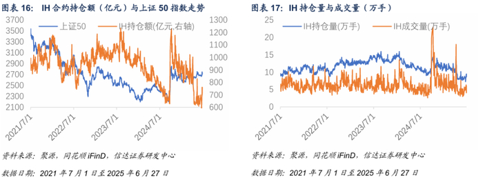 2025年6月27日,IH合约持仓额为760.02亿元,持仓量9.44万手,成交量5.92万手。本周IH持仓与成交水平相对前一周提升。