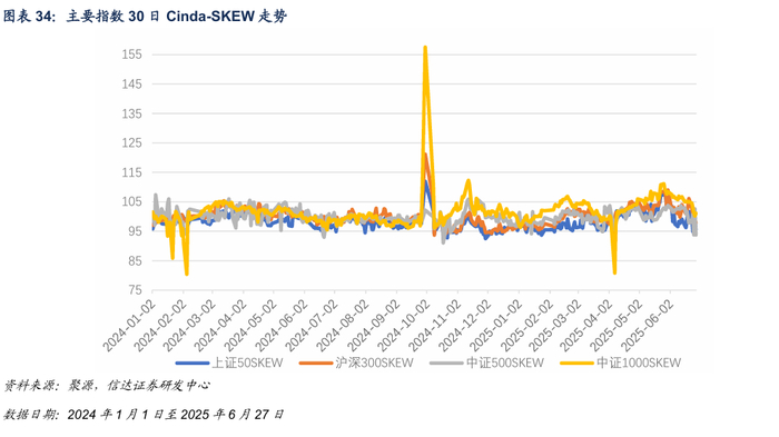 截至2025年6月27日,上证50SKEW、沪深300SKEW、中证500SKEW、中证1000SKEW分别为95.51、97.95、93.74、101.14。