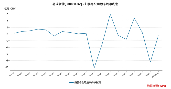 继2017年巨亏后,2024年易成新能再度亏损8.51亿元,扣非亏损9.47亿元,同比下滑15588%。