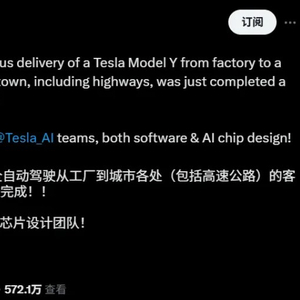 在X平台的一篇帖子中,马斯克宣布了该公司达成的上述创新性成就。马斯克表示,该公司已将一辆特斯拉Model Y从工厂自主交付到客户家中,并指出这次交付“跨越了城市”,且包含高速公路路段,比计划提前一天完成。