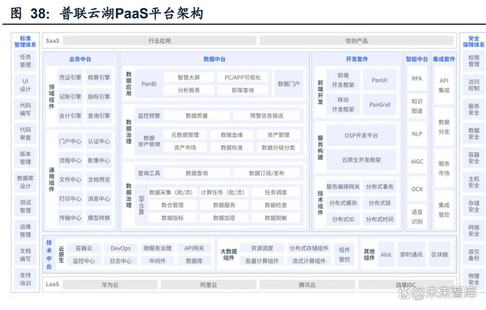 普联软件是大型集团企业管理信息化综合方案提供商,提供以信创ERP为核心的企 业经营管理智能应用场景和解决方案。在信创环境下,普联借鉴SAP、Oracle等公 司和为超大型集团企业二十多年信息化服务的经验,研发出针对大型集团客户的 ERP产品。2024年,普联成立了AI专职团队。在前期预研基础上,跟踪AI技术发展, 建设智能化基础应用开发能力,并配合各客户交付项目AI团队进行场景落地。 普联云湖PaaS平台为ERP产品研发提供了技术支持和AI能力。云湖平台贯穿于企业 软件的整个生命周期,为规划、设计、开发、部署、运维阶段赋能,其智能中台提供 了RPA、知识图谱、NLP、AIGC、OCR等能力。2024年,云湖平台也完成了智能体 开发框架、预算和推演小模型的研发,引入先进的AI公共产品和环境维护工具,提升 了智能化项目的交付能力和创新水平。