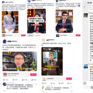 为了规避监管与举报,代理维权者会在短视频、社交媒体等各大互联网平台上使用大量“黑话”,包括但不限于:分琪(分期)、崔收(催收)、JR消费(金融消费)、投素(投诉)、咨寻(咨询)、鞋商(协商)、利熄(利息)、小崔(催收)、崔哥(催收人员)、可延(办理展期暂停还款1—3年)、退息退费(让金融机构免收利息)……