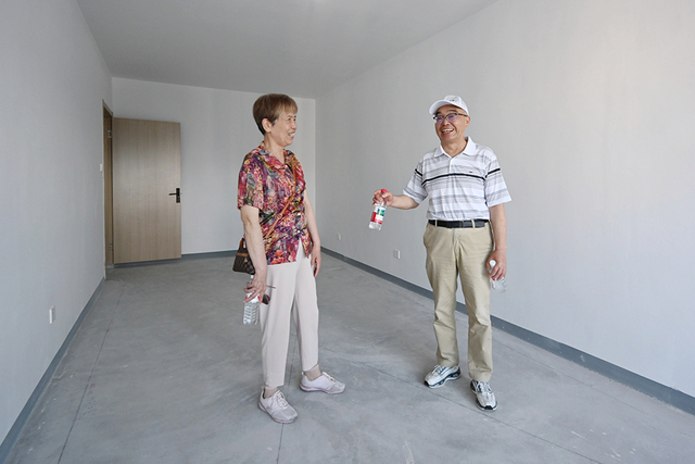 居民薛建汀夫妻参观新房。