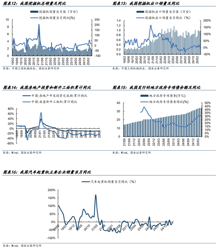 工程机械景气度稳健向上。25年5月挖掘机销量1.82万台,同比+2.1%,其中挖掘机出口销量9810台,同比+5.4%,内销为8392台,同比-1.5%。5月挖机内销受去年同期高基数影响,短期承压,更新周期带动下的挖掘机内需中长期增长趋势不改;25年5月工程机械出口金额保持增长,看好长期国内外共振。