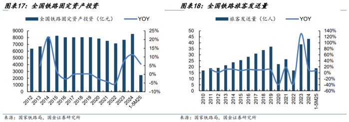 铁路装备景气度稳健向上。1-5M25铁路固定资产投资、铁路旅客发送量同比+5.9%、7.3%,看好铁路装备需求持续复苏。