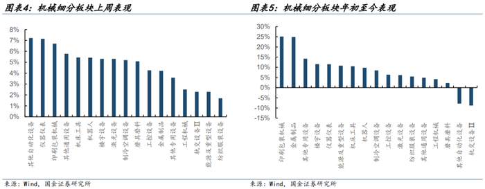 上周机械板块表现:上周(2025/06/23-2025/06/27)5个交易日,其他自动化设备/仪器仪表/印刷包装机械/其他通用设备/机床工具,涨幅为7.22%/7.15%/6.71%/5.78%/5.44%。