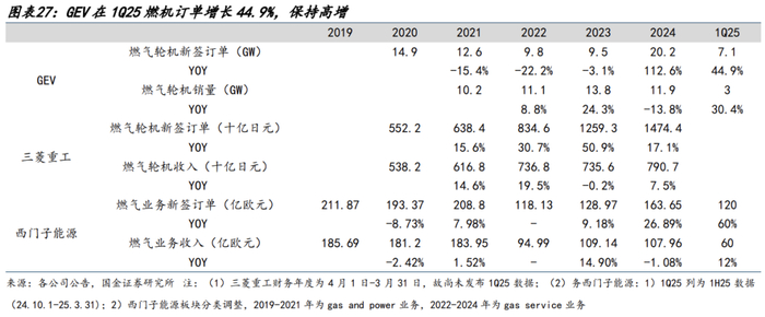 燃气轮机景气度稳健向上。全球燃气轮机行业景气度从2024年开始拐点向上,例如全球燃机龙头GEV的燃机订单在2020-2023年持续下滑。而2024年受益AIDC催化,GEV燃机新签订单同比增长112%,呈现加速增长态势,25Q1新签订单7.1GW,同比增长45%。行业景气度目前处于稳健向上的持续上行态势。