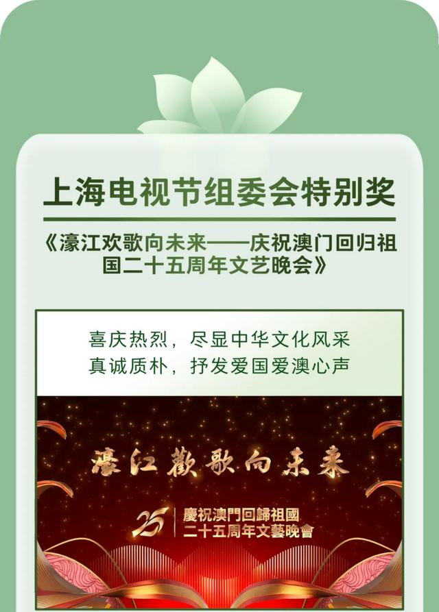 《濠江欢歌向未来——庆祝澳门回归祖国二十五周年文艺晚会》获“上海电视节组委会特别奖”