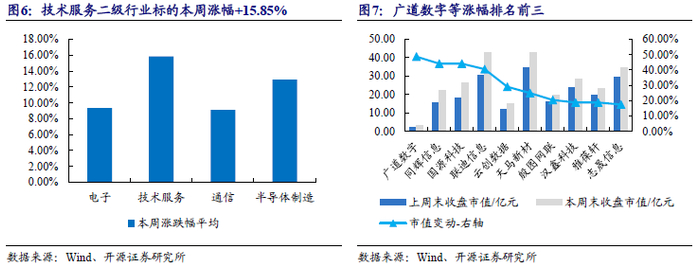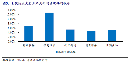 本周高端装备、信息技术、化工新材、消费服务、医药生物五大行业平均涨跌幅分别为+6.80%、+12.82%、+5.33%、+4.65%、+5.18%。高端装备行业本周市盈率中值升至47.2X,信息技术行业本周市盈率中值升至93.0X,化工新材行业本周市盈率中值升至43.8X,消费服务行业本周市盈率中值升至59.1X,医药生物行业本周市盈率中值升至46.3X。