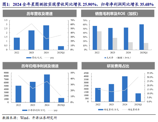 2024全年星图测控实现营收2.88亿元同比增长25.90%,归母净利润8497.44万元同比增长35.68%。2025Q1实现营收0.44亿元同比增长34.49%,归母净利润1340.27万元同比增长10.35%。