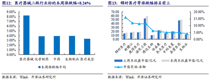 医药生物行业本周市盈率中值升至46.3X,锦好医疗+16.05%、新赣江+11.91%、鹿得医疗+11.34%涨跌幅排名前三。(医药生物包含医疗器械、化学制药、中药、生物制品、医疗美容)