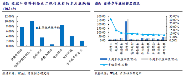 化工新材行业本周市盈率中值升至43.8X,派特尔+31.25%、新威凌+15.08%、科隆新材+11.14%涨跌幅排名前三。(化工新材包含金属新材料、橡胶和塑料制品业、化学制品、非金属材料、电池材料、纺织制造、专业技术服务业等二级行业)