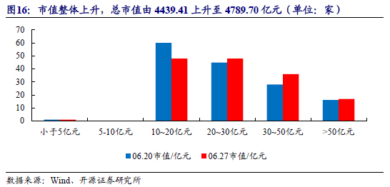 2025年6月23日至2025年6月27日,150家企业的市值整体上升,总市值由4439.41上升至4789.08亿元,市值中值由22.40上升至23.57亿元。