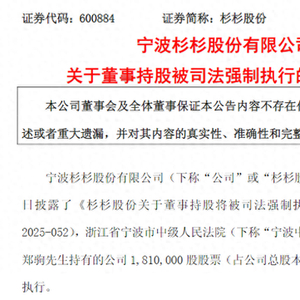 杉杉股份创始人长子全部持股被强执,知名牛散魏巍斥资1亿元入局