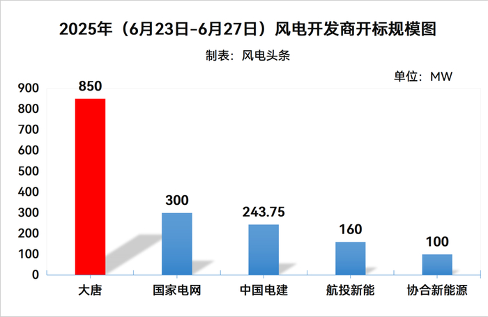 大唐开标850MW,中车株洲所中标600MW,三一重能中标200MW,远景能源中标50MW。