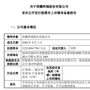 近日,备受市场关注的荣耀终端股份有限公司(简称“荣耀”)上市传来最新进展。根据中国证监会网站披露,6月26日荣耀取得上市辅导备案,中信证券担任辅导机构。