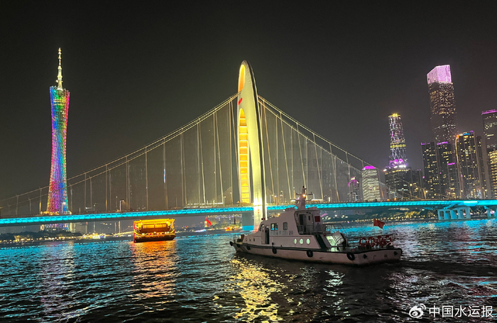 夜游船航经的珠江东河道,是一条黄金水道,凝聚着岭南文化的精魄与现代都会的华彩。为了让这条黄金水道变绿变清,广东海事部门正着力打造珠江东河道零排放示范区。