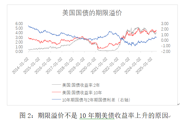 伯南克框架将长期收益率分解为通胀预期、自然利率与期限溢价三因子。逐个分析三个因子。一是美债的期限溢价在本轮升息过程中整体实际上是在降低的(图2),反映了期限溢价不是长期美债收益率高位的原因;从更小的时间区间来看,4月初关税战后,10年期美债和2年期美债利差从0.3%升至0.49%。
