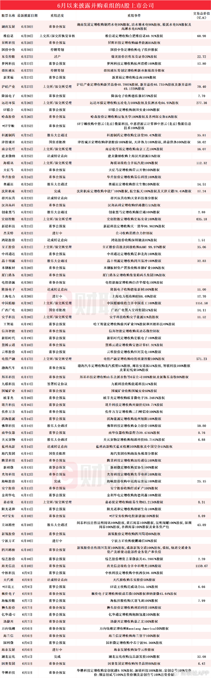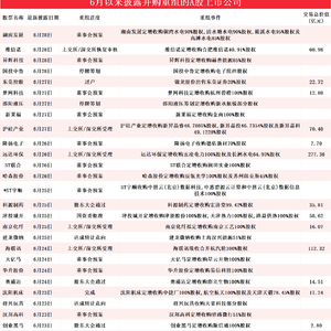 6月披露并购重组进展的A股名单一览