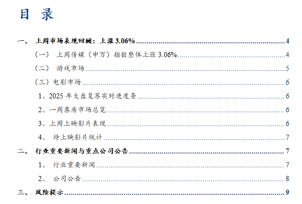 (一)上周传媒(申万)指数整体上涨3.06%