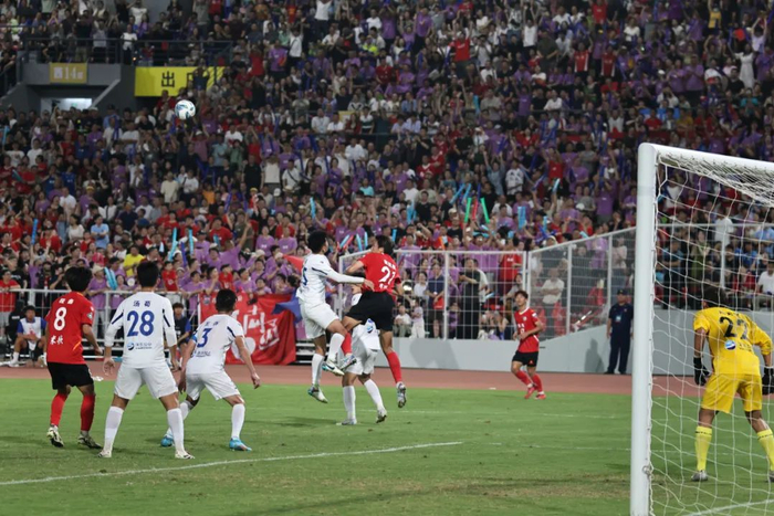 89分钟南通队32号齐丹头球攻门