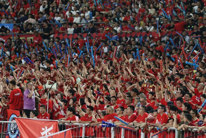 这不仅是一场足球盛宴,也是属于球迷们的狂欢时刻。南通足球训练中心海门基地看台上,此起彼伏的呐喊声响彻全场,球迷们炽热的激情,将赛场化作一片沸腾的海洋。