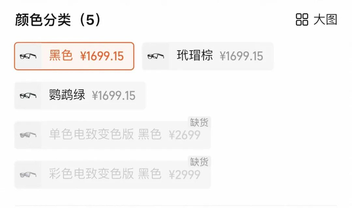 “其实很多顾客会来问有关眼镜的显示功能,但这款眼镜是没有的。另外就是变色功能问得较多,但现在变色款缺货了,他们也体验不到。”上述店员表示。