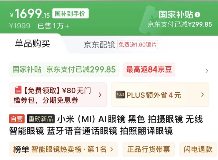 发售四日销量已破万!小米AI眼镜火了