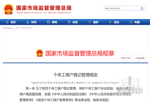 一批新规7月施行:市场监管总局出台新规 助力个体工商户规范发