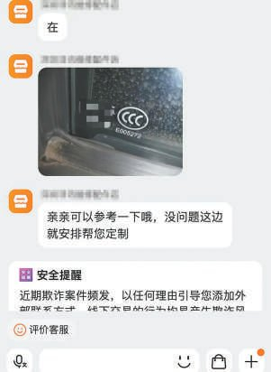 记者联系了其中一个商家,该商家主要销售印章和快干型印油。沟通中,商家向记者提供了加盖印章的效果图,图片中的“3C标志”被盖印在一块车窗玻璃上,效果十分逼真。为方便印在手机充电宝上,客服称还可以根据需求缩小印章比例。