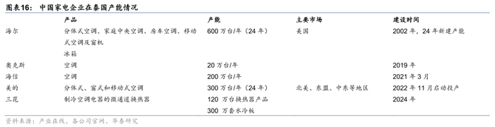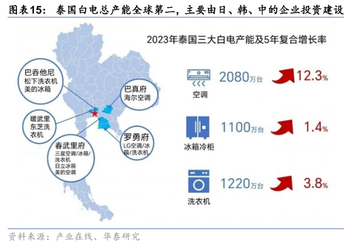 主流家电企业均已经在泰国重点布局产能,并在2019年后加大了本土化生产能力,形成主要针对海外市场的出口能力。