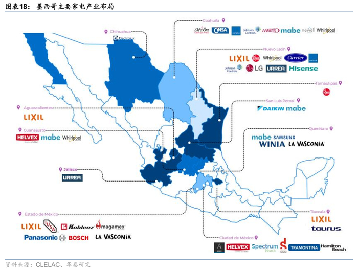 主要外资厂商包括韩系、美系、中资等,在新莱昂州、科阿韦拉州、奇瓦瓦州和巴哈加州等设有整机工厂及零部件供应链。越来越多家中国家电企业在墨西哥加速建厂或扩产。