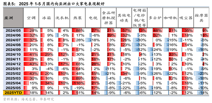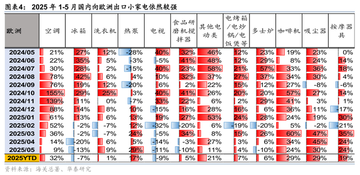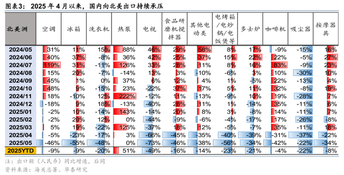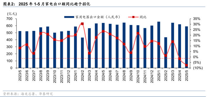 根据海关总署数据,2025年5月,中国家电出口同比增速明显弱化,较2023Q4-2024Q4期间相对高增长时期明显放缓。