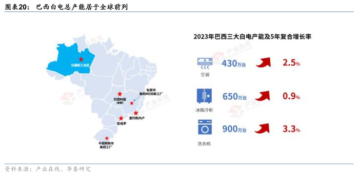 2)马瑙斯工业区享受进口原材料免税、销售环节所得税减免等政策,推动白电企业在地投资工厂并实现本地零部件采购。