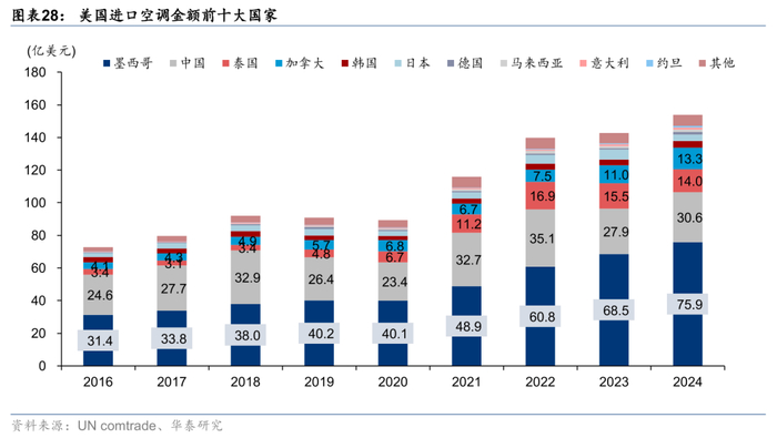 美国空调进口格局:墨西哥、泰国、加拿大均实现高增长