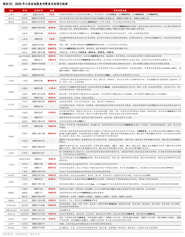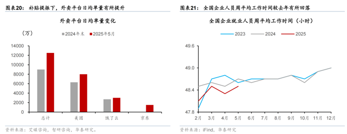 随着大件可选消费增长有所“透支”,补贴服务消费短期拉动效应或较明显。如部分外卖平台的餐饮补贴,5-6月补贴额度预计超百亿元,推动外卖市场日均单量扩容3-4成。此外,休假制度优化等政策边际推升服务消费意愿和体验。如今年5月发改委新闻发布会提及“反内卷”,鼓励居民“带薪休假”、探索弹性工作制。河北、江西、甘肃等11个省份探索试点2.5天休假制度。